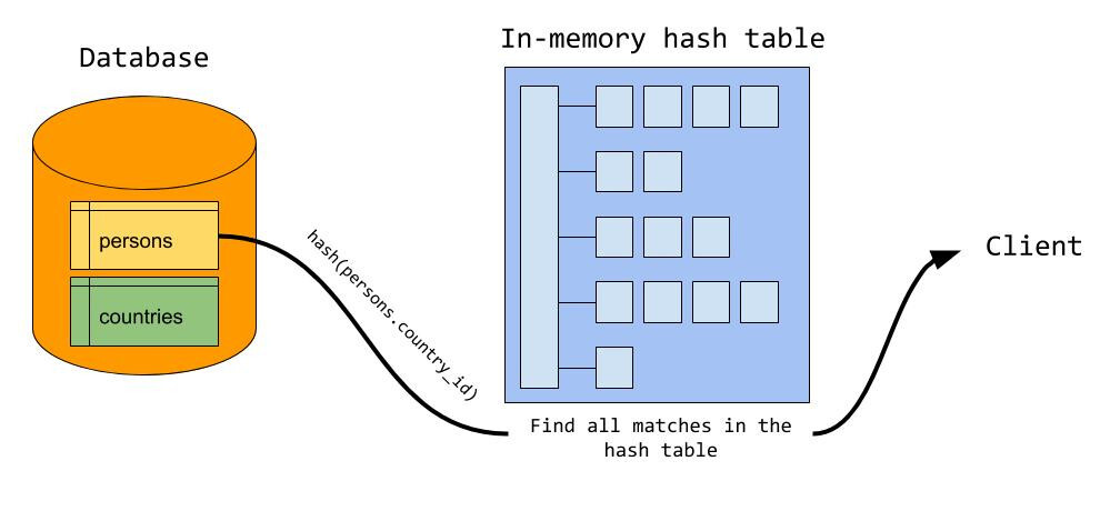 예를 들어 persons와 countries라는 테이블을 조인한다고 했을 때 둘 중에 바이트가 더 작은 테이블을 기반으로 해서 테이블을 빌드한다.